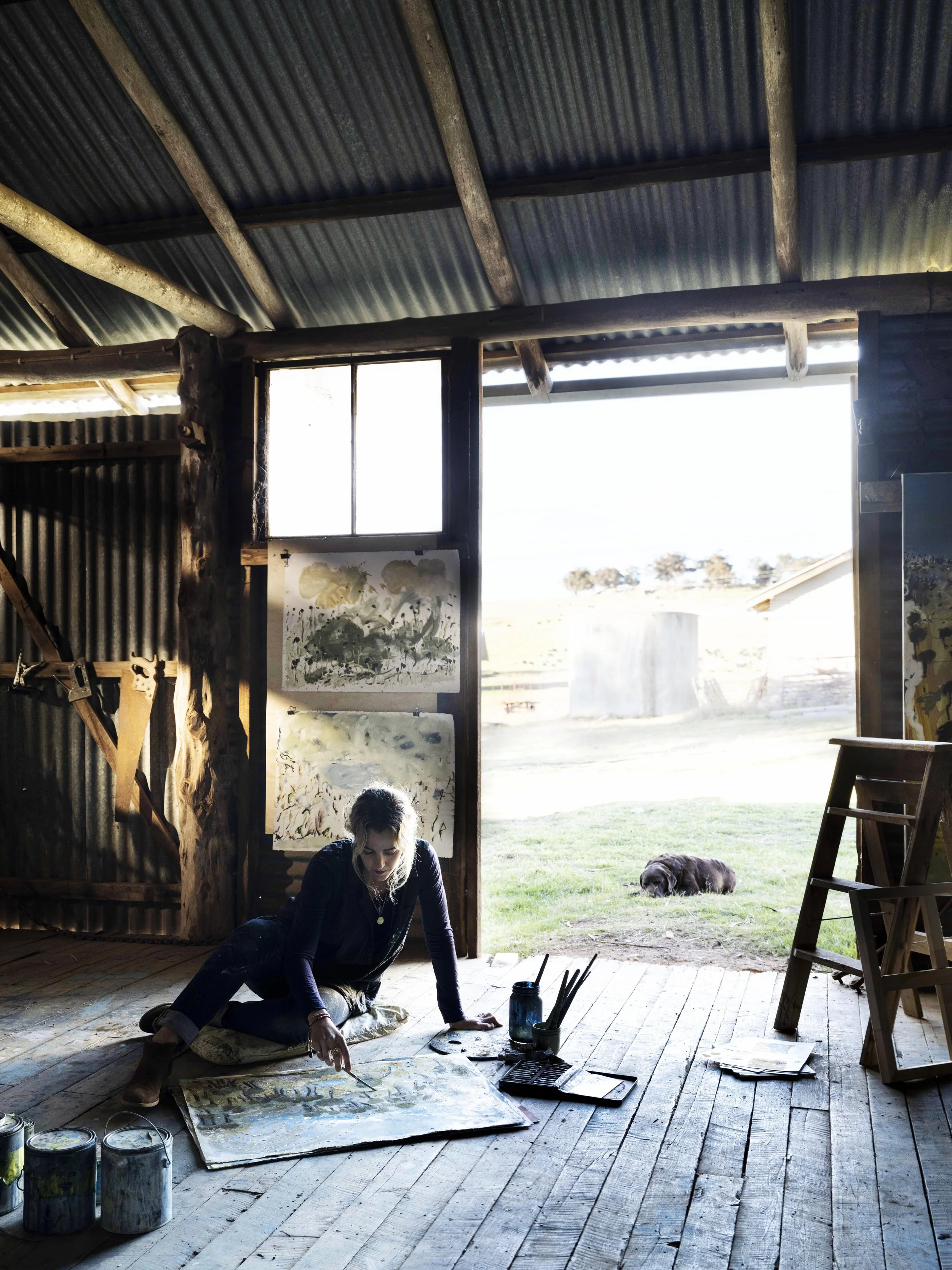 ’Working in the elements based out of the repurposed shearing shed, shapes my art and my thinking. My workspace is open, gritty and holds lots of history.’